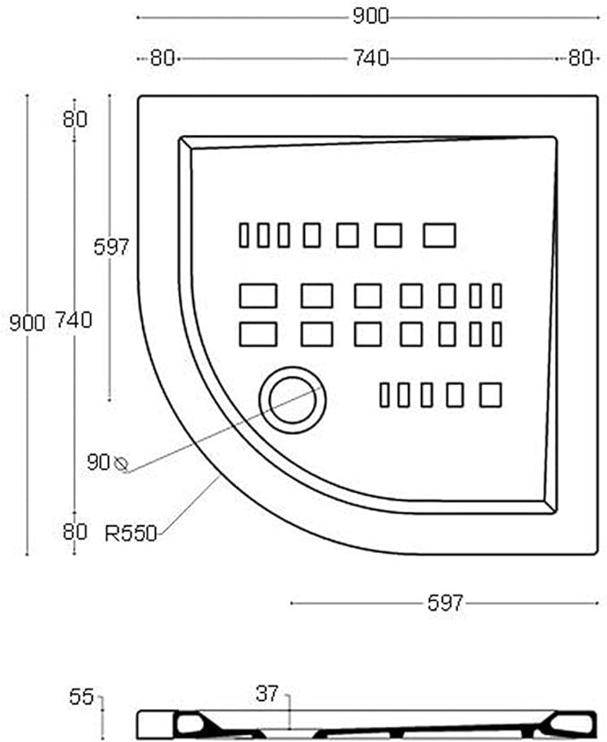 - Dimensioni cm 80x80 Foro piletta Ø 9 cm