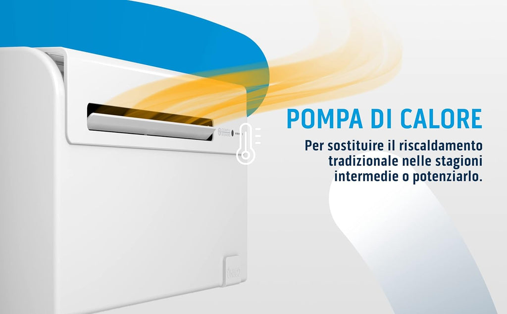 Il climatizzatore a pompa di calore senza unità esterna on-off con gas R32.