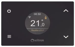 E' caratterizzato da un display LCD circolare e da quattro pulsanti touch, che ne permettono il controllo anche offline. Direttamente dal cronotermostato, senza connessione, è possibile: gestire l’accensione e lo spegnimento; aumentare o diminuire la temperatura di setpoint; selezionare la modalità di funzionamento tra riscaldamento e raffrescamento; regolare i parametri di base Antigelo, Offset, Isteresi; gestire le impostazioni relative all' illuminazione e la lingua; accedere all’Infoservice.
