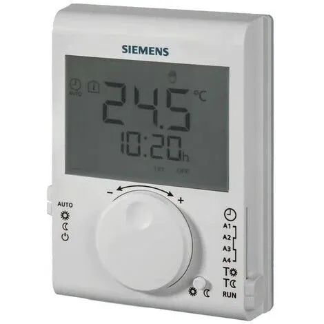 Termostato elettronico con programmatore giornaliero RDJ100C Siemens elettronico con display LCD per riscaldamento o raffreddamento, facile funzionamento tramite pulsanti di grandi dimensioni e un grande display, per riscaldamento o raffreddamento.