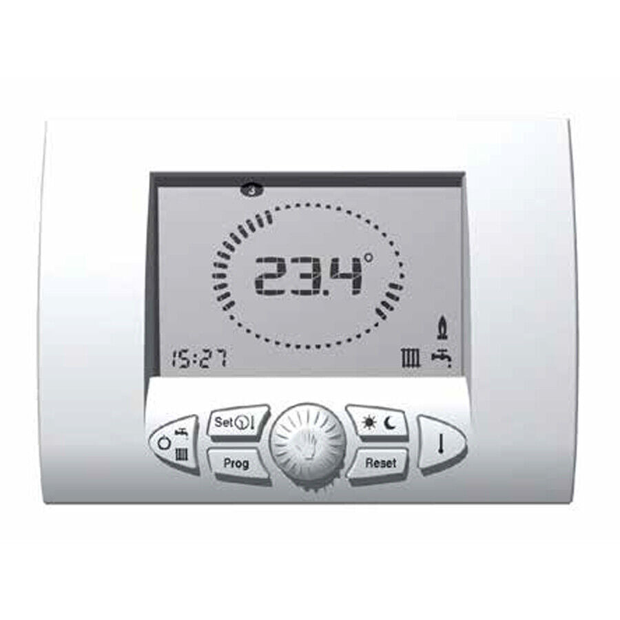 Dotato di un sensore di temperatura gestisce impianti di riscaldamento con controllo integrato dell’acqua calda sanitaria.