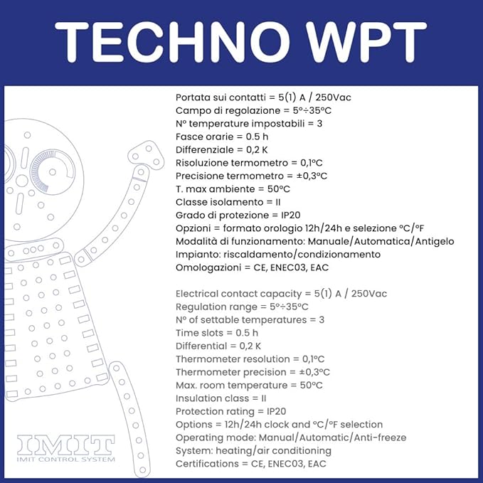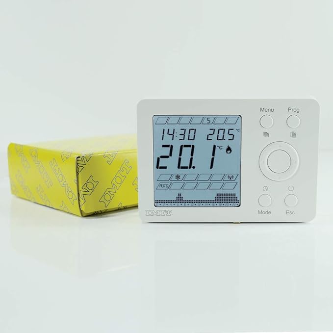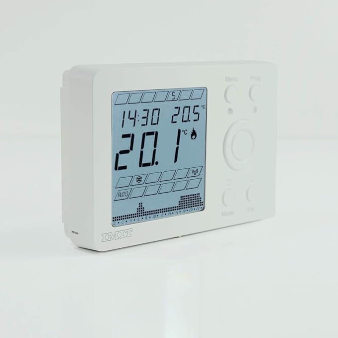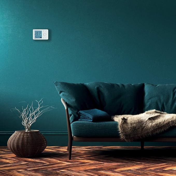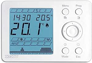 cronotermostato programmabile settimanale. modalit riscaldamento o raffrescamento. schermo lcd monocromatico con retroilluminazione blu. programmazione facile ed intuitiva per l'utente. la temperatura ambiente sempre chiaramente visibile in primo piano, l'ora e la temperatura impostata in secondo piano. campo di regolazione 5-35c. installazione a parete. grado di protezione ip20