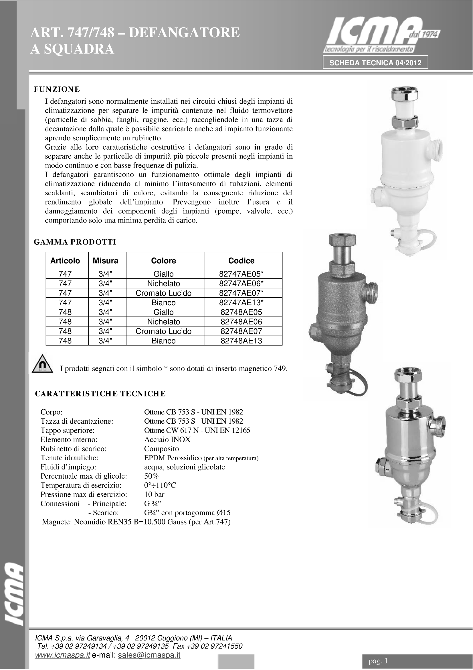 Defangatore magnetico compatto sottocaldaia compreso di magnete per eliminare le particelle ferrose, dotato di rubinetto di scarico con portagomma. Pressione max d’esercizio 10 bar, temperatura max d’esercizio 110°C, rete in acciaio inox. Elevata proprietà magnetica 10.500 Gauss. Compreso di raccordo di connessione alla caldaia 3/4 F-F.