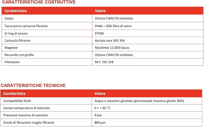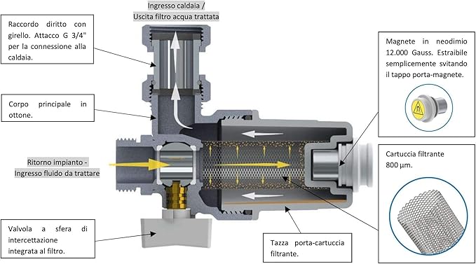 Attacco filtro lato caldaia: 3/4" M ISO 228