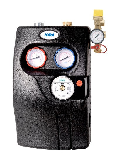 Gruppo di circolazione di mandata e ritorno per circuiti primari di impianti solari, per la circolazione del fluido dal pannello solare al bollitore. Composto da valvole a sfera di intercettazione con termometro sull’andata e sul ritorno, con circolatore specifico per impianti solari, gruppo di scarico aria, valvola di sicurezza a 6 bar, rubinetto di carico e scarico per effettuare il lavaggio dell’impianto prima del carico, flussometro 0-12 lt/min per regolare la portata, valvola di ritegno antigravità, manometro, guscio di isolamento termico.