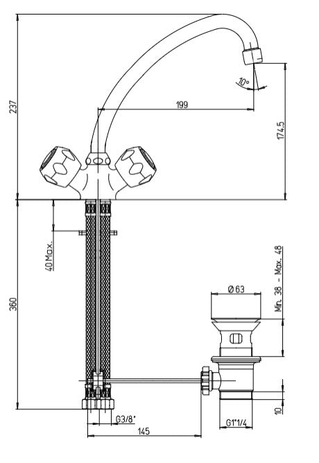 GRUPPO LAVELLO Monoforo CANNA ALTA bocca girevole Acqua Fredda e Acqua Calda Jota Catania