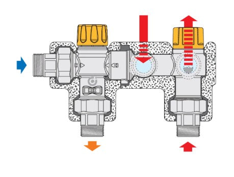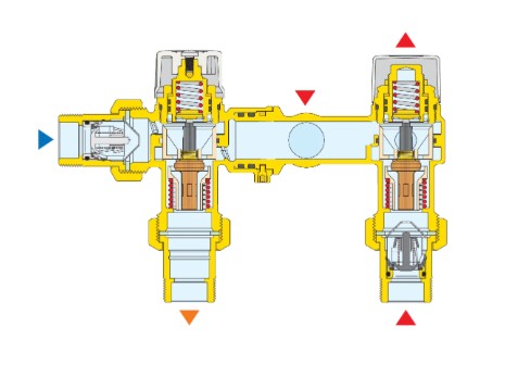 - miscelatore termostatico antiscottatura regolabile con manopola, per impianti solari;