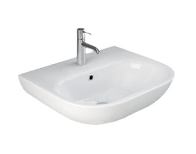 Lavabo sospeso della collezione Tonique di Rak Ceramics. Il lavabo ha un design semplice quasi retrò, realizzato nella configurazione da 45 e 55 cm.
