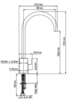 Miscelatore bocca Alta Lavello serie Verbania quadrato laterale Argo Rubinetterie