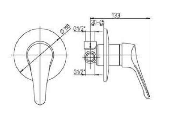 Miscelatore da incasso per doccia Argo serie Derby con cartuccia a dischi ceramici ø 40 – bassa.