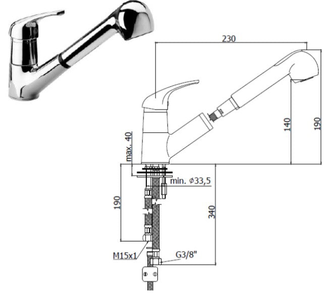 Miscelatore Lavello con Doccetta Estraibile serie PEGASO
