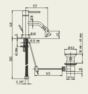 Miscelatore monoleva Bidet serie Cilindra con attacco piletta 1" 1/4 Argo Rubinetterie