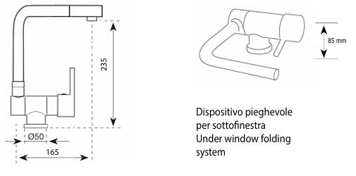 Miscelatore Sottofinestra Lavello serie Parigi bocca Alta angolo tubo pieghevole Argo Rubinetterie