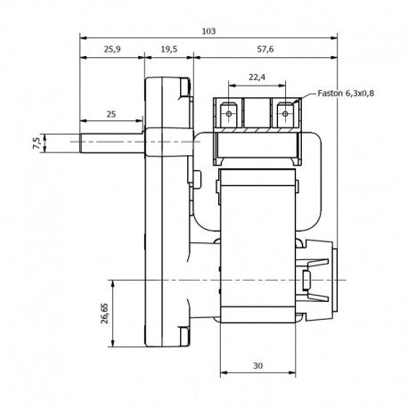 Serie 911, coppia nominale 30 Nm, assorbimento 28 Watt, velocità 1,5 rpm, rotazione antioraria, albero 8,5mm, pacco lamellare da 30 mm, alimentazione 220 V AC - 50/60Hz.