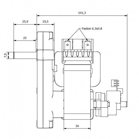 Serie 911 con encoder, coppia nominale 17 Nm, assorbimento 28 Watt, velocità 3 rpm, rotazione oraria, diametro albero 8,5 mm, pacco lamellare da 30mm, alimentazione 220 V AC - 50/60Hz.