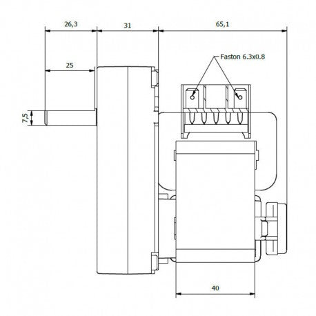 Serie 917, coppia nominale 37 Nm, assorbimento 40 Watt, velocità 2,5 rpm, rotazione oraria, diametro albero 8,5mm, pacco lamellare da 40 mm, alimentazione 220 V AC - 50/60Hz.