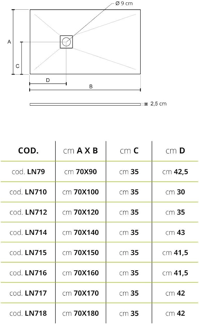 Piatto Doccia Eco Stone London 90x100 Colorato Slim H2,5cm -Resina Bianca ALTHEA
