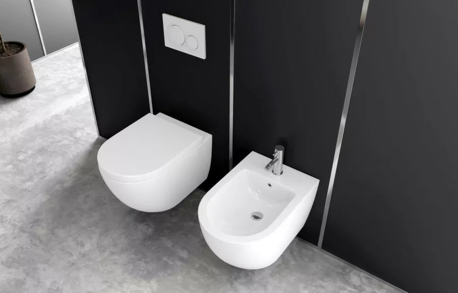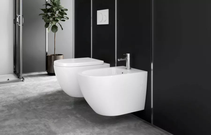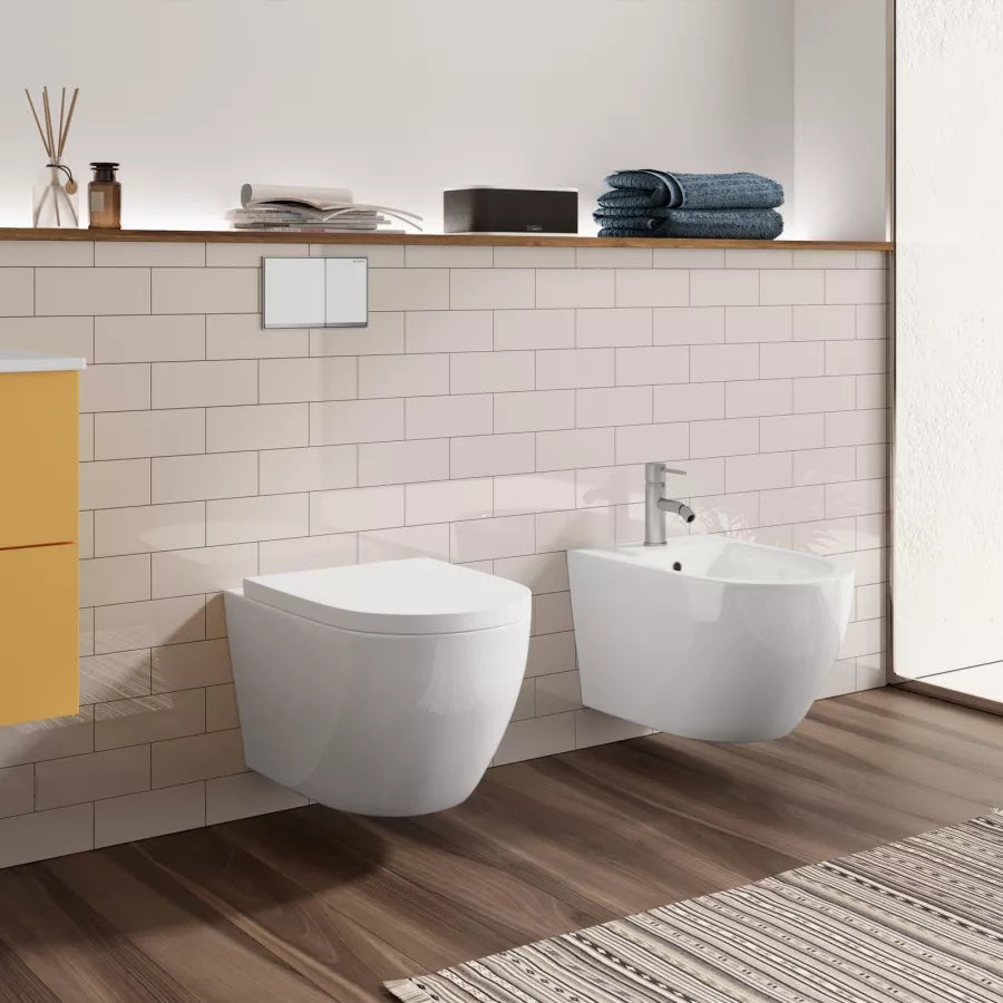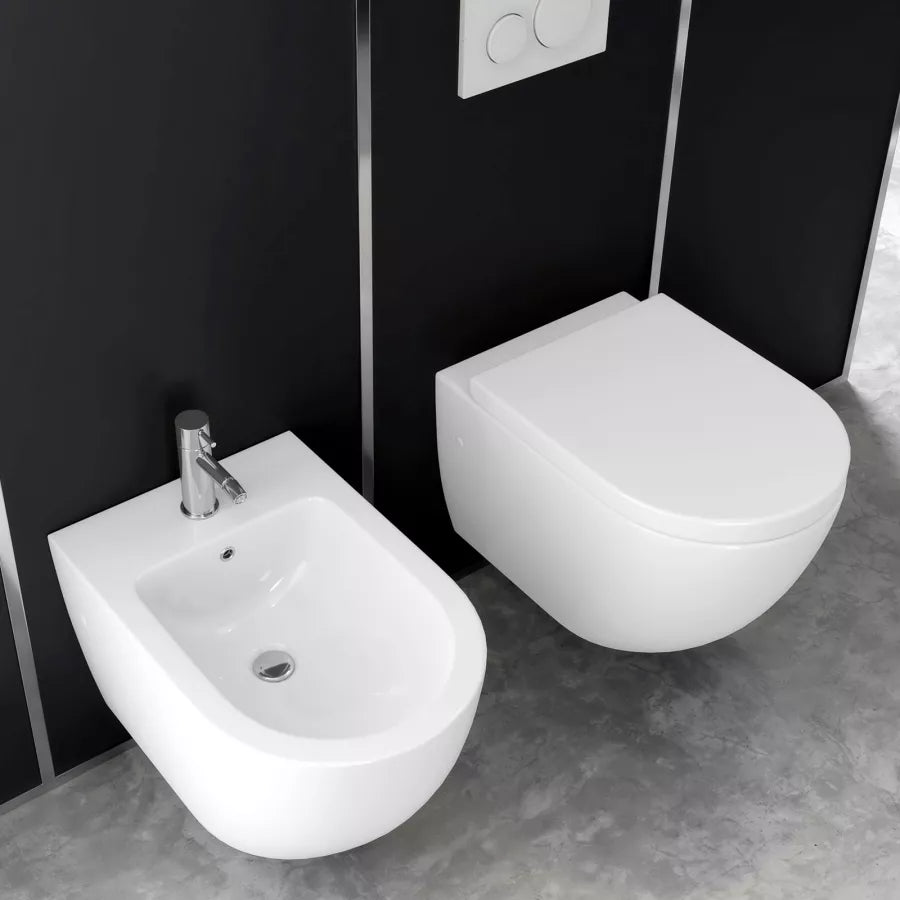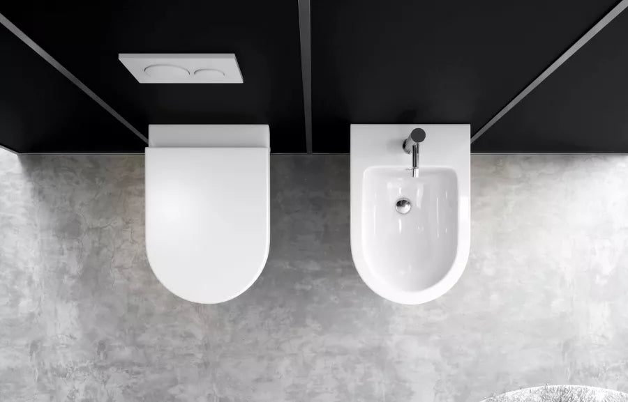 Vaso sospeso in ceramica bianca della collezione Origin di Rak Ceramics. Il wc è prodotto dalla Rak, azienda leader a livello mondiale nella produzione di ceramica sanitaria e articoli per arredobagno.