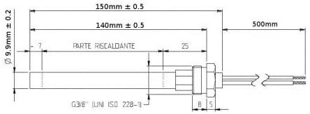 - CANDELETTA Esecuzione con raccordo filettato 3/8" GAS, diametro 9,9mm, lunghezza totale 150mm, lunghezza sottobattuta 140mm, 300Watt.