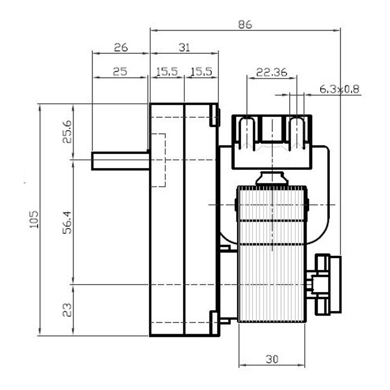 Serie 917, coppia nominale 16 Nm, assorbimento 30 Watt, velocità 2,5 rpm, rotazione oraria, diametro albero 8,5mm, pacco lamellare da 30mm, alimentazione 220 V AC - 50/60Hz.