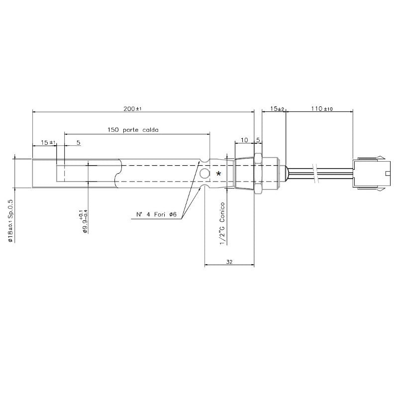 Esecuzione speciale diametro resistenza 9.9mm, lunghezza totale 175 mm 350Watt.