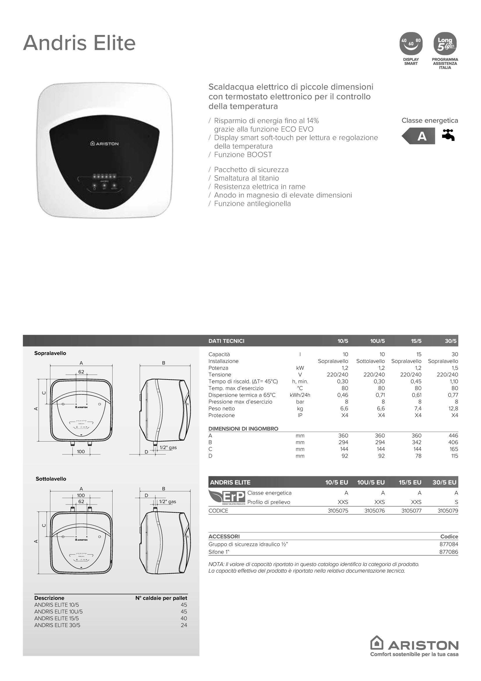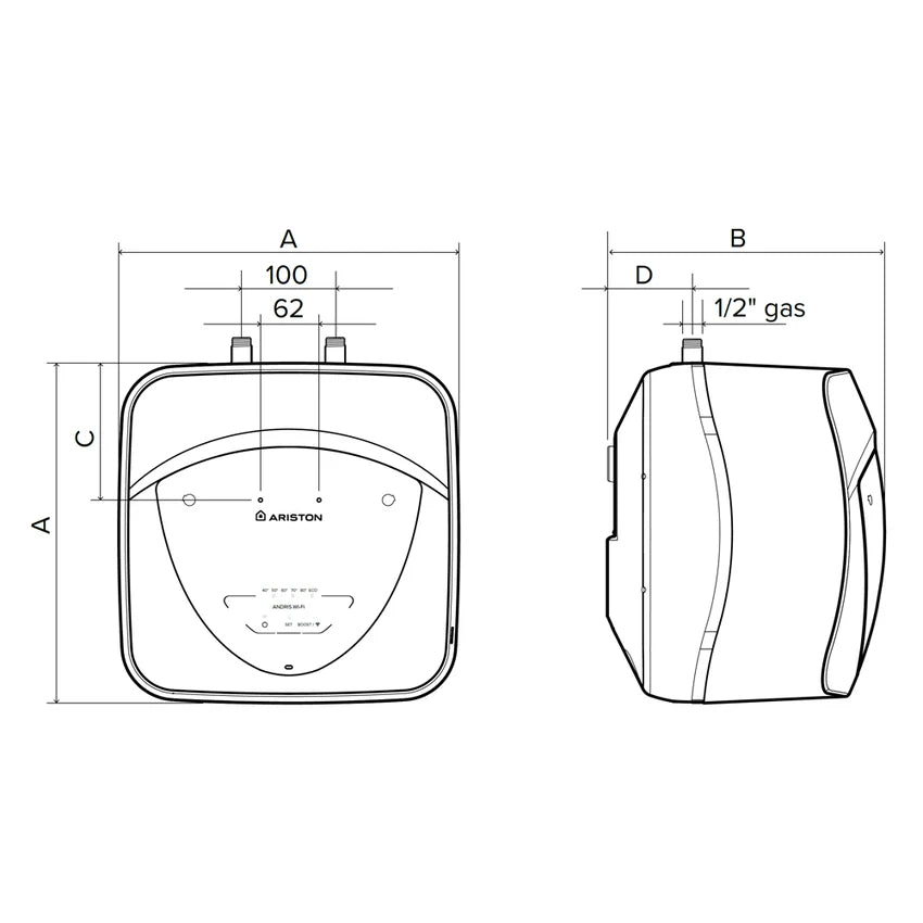 Scaldabagno Murale Ariston ANDRIS 10U/5, per Acqua calda sanitaria, da Interno, a Elettrico, kW potenza 1.2, 10 l capacità di accumulo, classe energetica ACS A, 29.4 cm lunghezza, 36 cm larghezza, 36 cm altezza, kg 6.6 - 3105076
