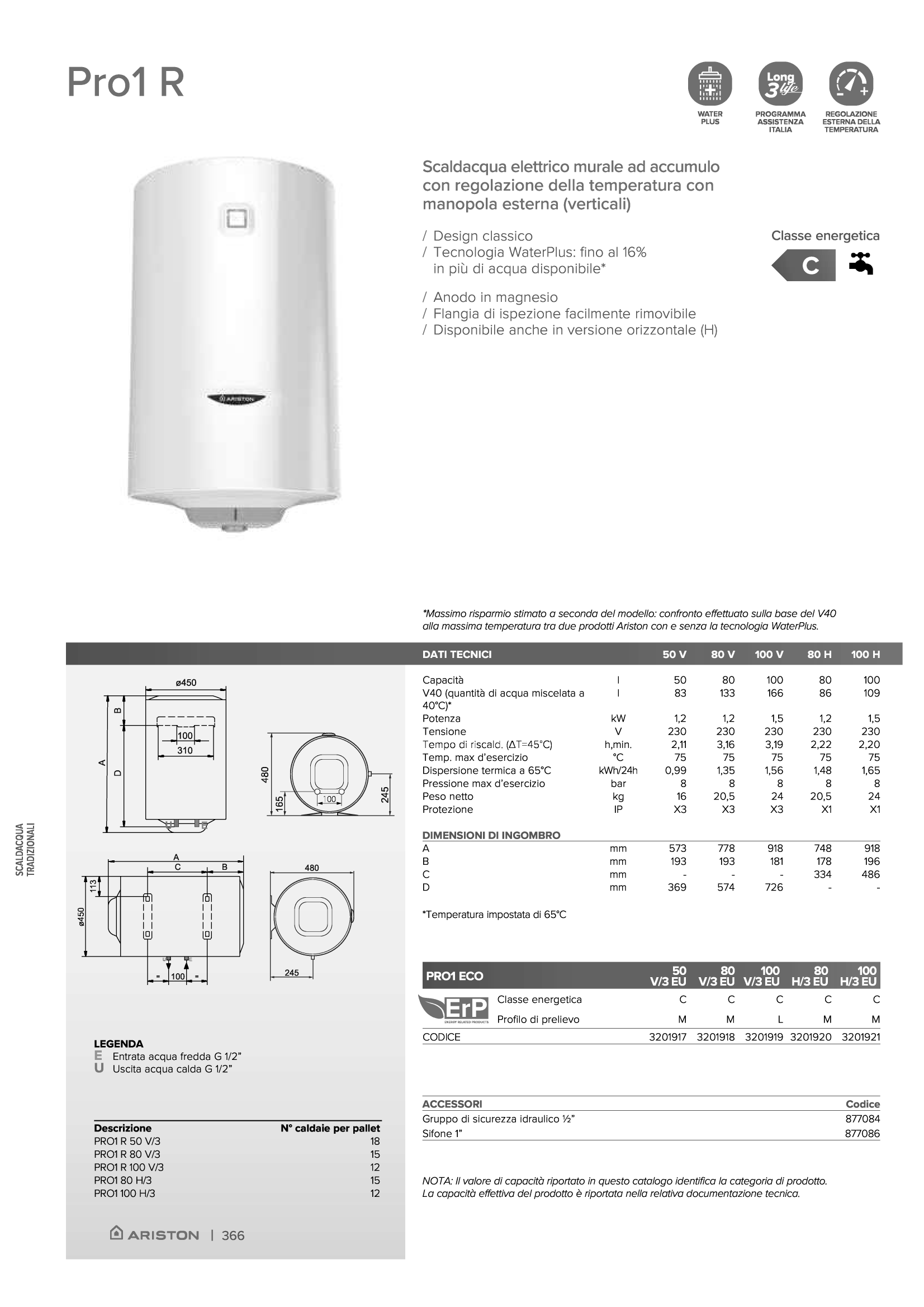 Le prestazioni Ariston al top della categoria in una soluzione compatta. I materiali accuratamente selezionati sono il segreto della durata nel tempo dei modelli PRO1 R.