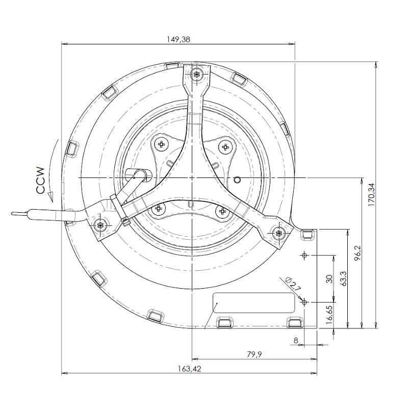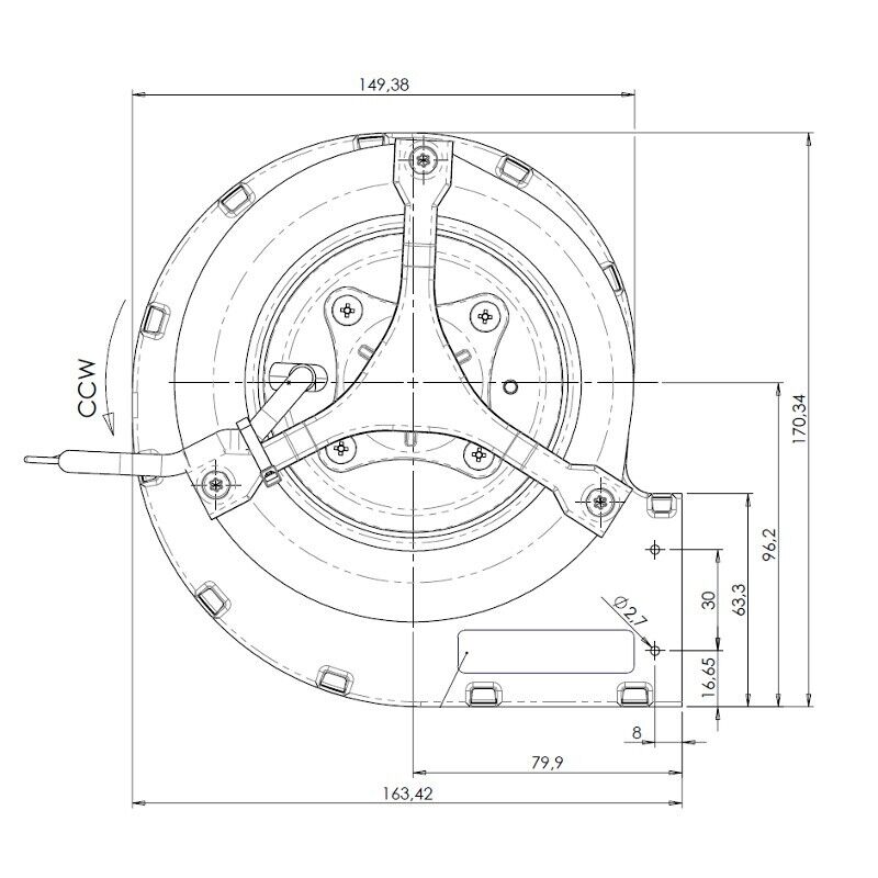 Ricambistufeapellet Ventilatore centrifugo Trial CAD12R-001 per stufe a Pellet. Lungo 164 mm Bocchetta: 146x63 mm