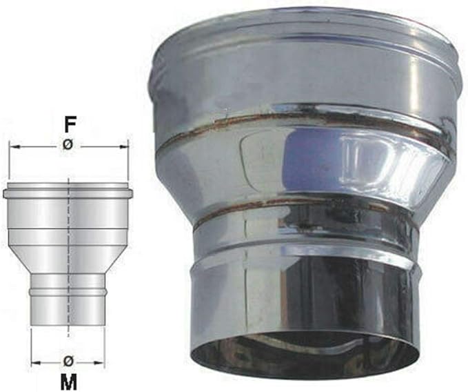 Riduzione/Aumento di diametro per canna fumaria ACCIAIO INOX AISI 316 -VARIE MISURE- ø M 140 / 150 F ø