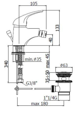 Rubinetto Miscelatore Monocomando per Bidet con Scarico Automatico Cromato serie PEGASO