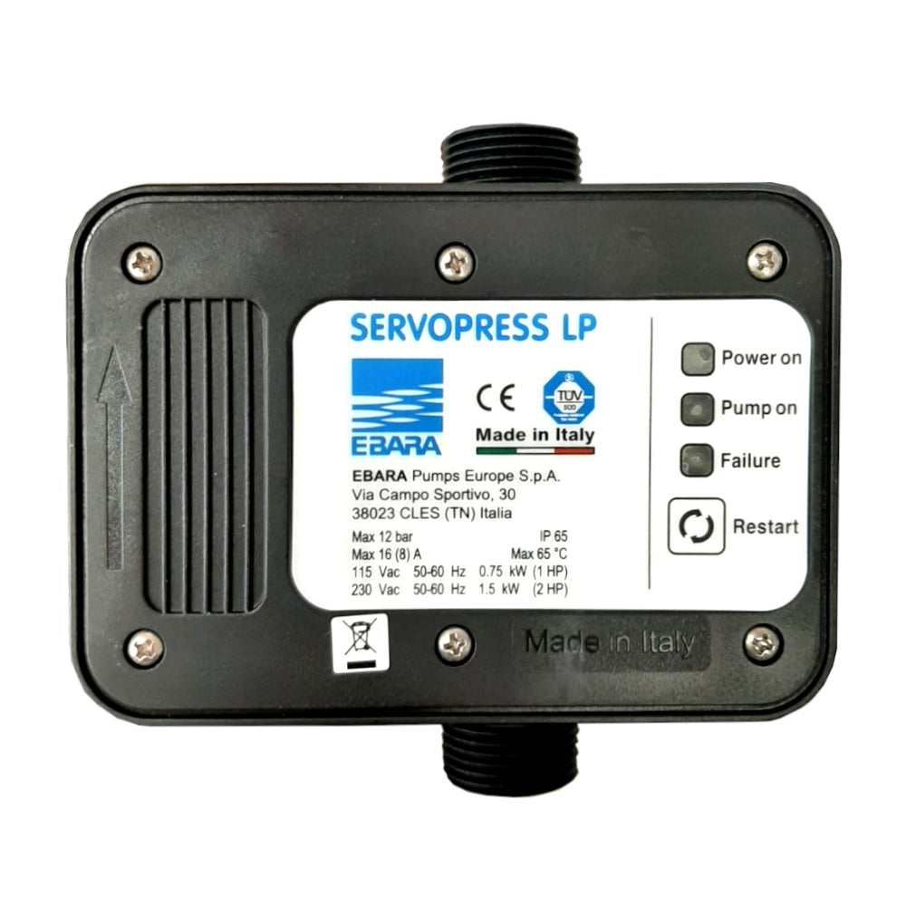 Il SERVOPRESS comanda l’avviamento e l’arresto automatico della pompa quando si apre o chiude un’utenza collegata all’installazione, mantenendo la pompa in marcia sino a quando una qualsiasi utenza rimane aperta, assicurando alla rete la portata richiesta.