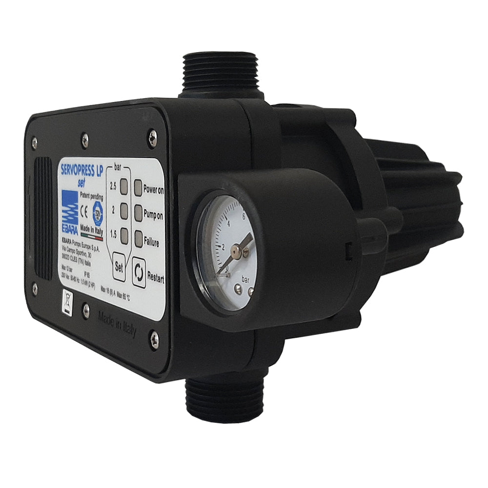 Il SERVOPRESS comanda l’avviamento e l’arresto automatico della pompa quando si apre o chiude un’utenza collegata all’installazione, mantenendo la pompa in marcia sino a quando una qualsiasi utenza rimane aperta, assicurando alla rete la portata richiesta.