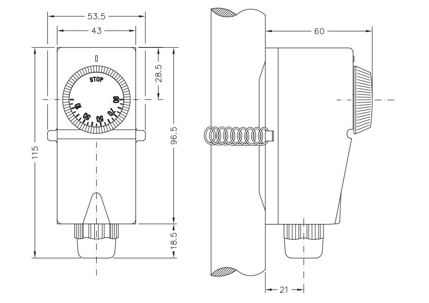 Termostato Regolabile A Contatto Per Tubazione Con Molla Modello TUSC– CEWAL