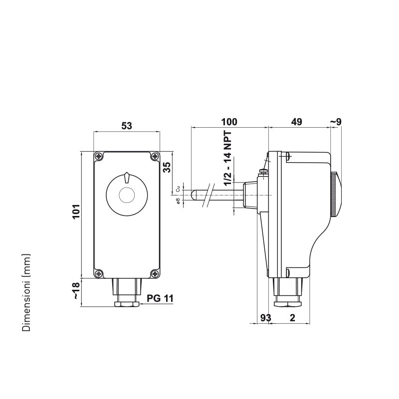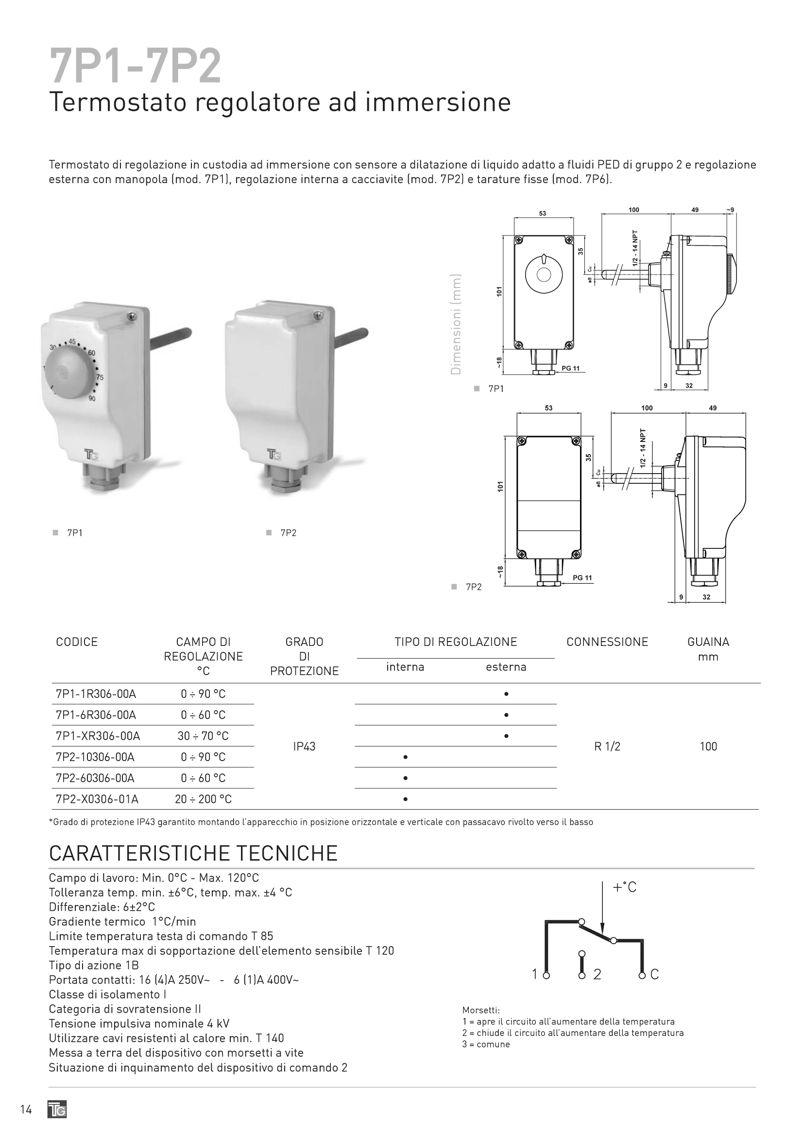 Termostato di regolazione in custodia ad immersione con sensore a dilatazione di liquido adatto a fluidi PED di gruppo 2 e regolazione