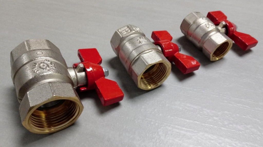 La valvola sfera con maniglia a farfalla é disponibile nelle misure 1/2 - 3/4 - 1" e ingressi FF o MF