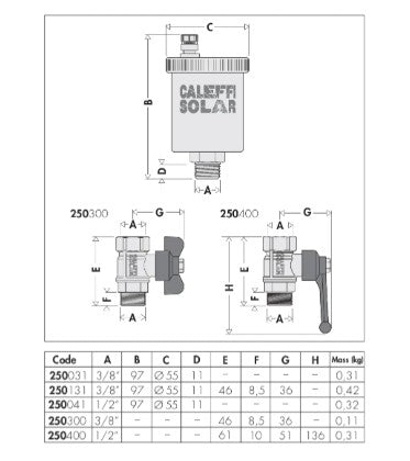 Valvola automatica di sfogo aria per impianti solari 3/8