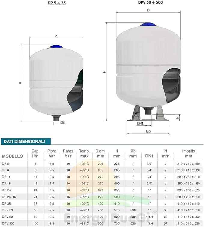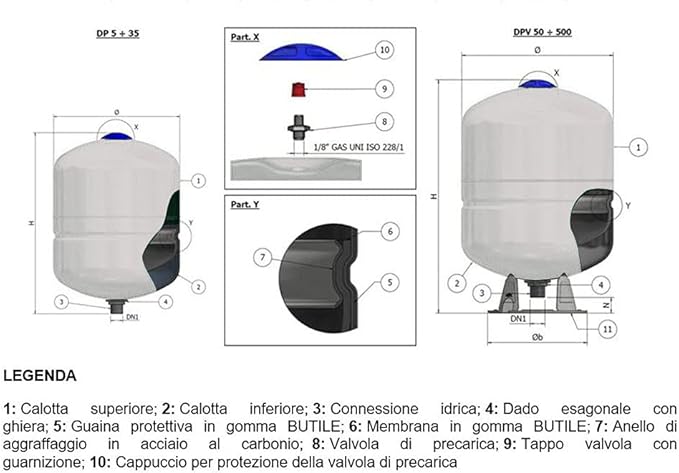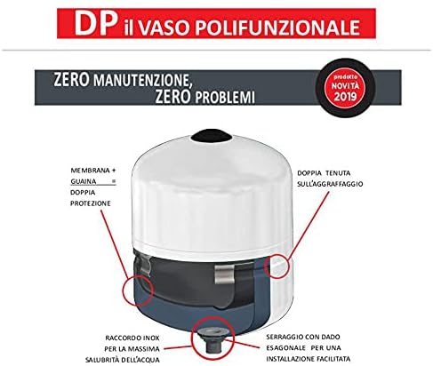 Vaso di espansione polifunzionale DP a membrana fissa con guaina protettiva per acqua sanitaria o riscaldamento (8 litri)
