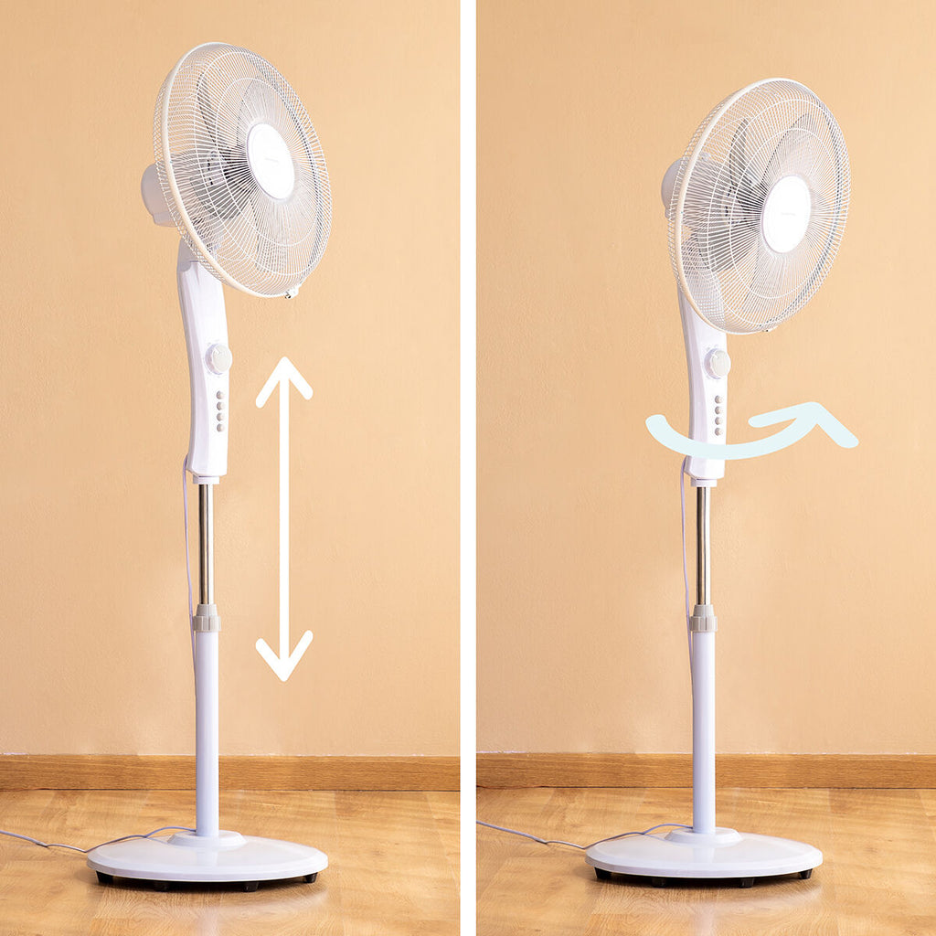 Il nostro ventilatore è ideale per qualsiasi tipo di ambiente. Le sue 5 pale dal taglio aerodinamico, il movimento oscillante e l’angolo regolabile garantiscono una vera sensazione di freschezza, essendo la scelta perfetta per rinfrescarsi di giorni e di notte.